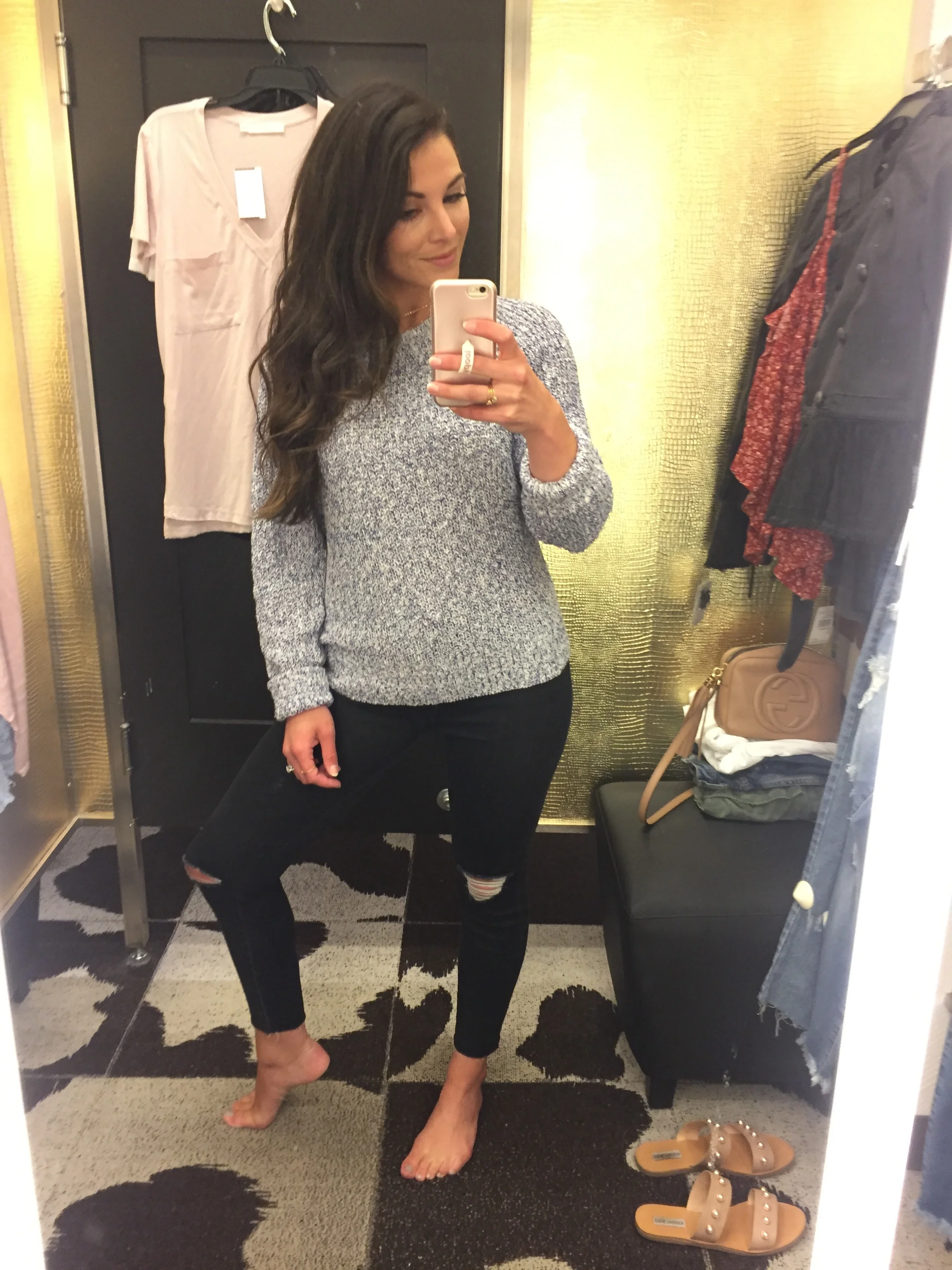 Have you shopped the Nordstrom Anniversary Sale yet?! If not, there are still plenty of in stock items that are perfect to wear right now! Today I'm sharing my dressing room diaries from the first day of the sale to show you some of them, plus my favorite sweaters and jackets that are still in stock and selling out fast! Keep reading to see everything I tried on plus sizing info for each item!