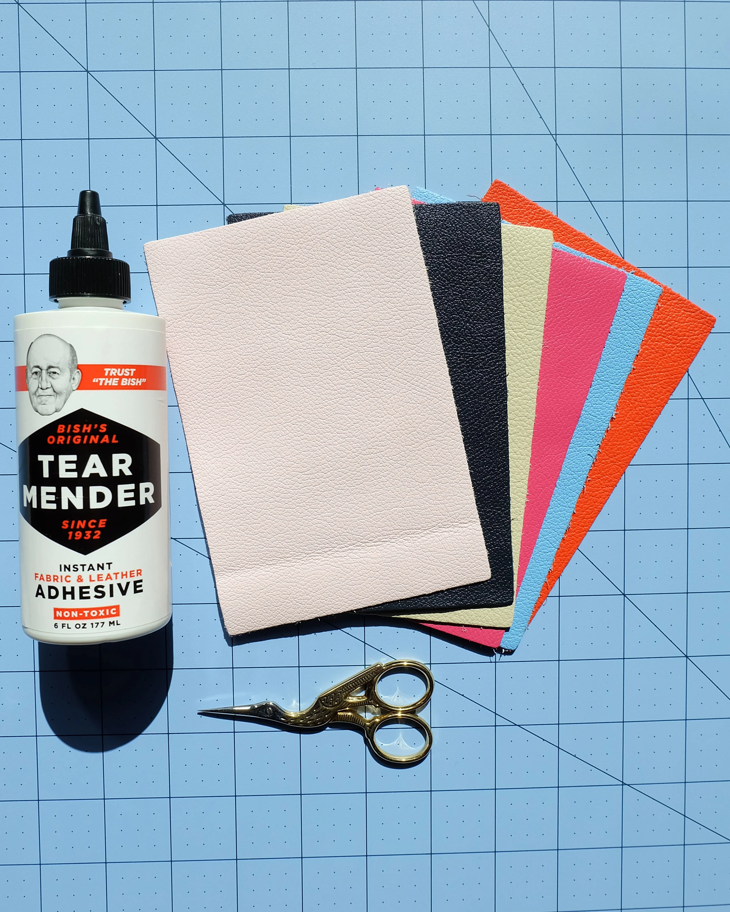 1. 6 leather pieces. The colors I chose were Baby Pink, Navy Blue, Egg Shell, Hot Pink, Aero Blue, and Orange.